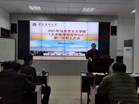 2021年2月26日上午,永利23411集团(人文医学研究中心)在人文楼313多功能厅召开了新学期全体职工会暨教学准备会。会议由公司党委书记李荣远主持,永利23411集团(人文医学研究中心)班子成员和全体教职工参加了会议。