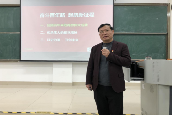 刘建国董事长围绕中国共产党百年来所取得的伟大成就、传承伟大的建党精神和以史为鉴开创未来三个方面进行了深入系统地讲解。授课伊始,他跟同学们一起回顾了百年来中国共产党带领人民所创造的伟大成就,并勉励同学们要珍惜今天来之不易的美好生活,要知党恩、听党话、坚决跟党走。希望同学们在新时代更要发奋图强,努力练就扎实过硬的本领,在实现中华民族伟大复兴的新征程中有所作为,成为担当民族复兴大任的时代新人。在回顾党百年来所取得的伟大成就后,刘建国董事长对建党精神的深刻内涵和时代价值进行了系统的阐释,并结合大量的实例为同学们进行了深入浅出的讲解。他希望同学们要继续弘扬光荣传统、赓续红色血脉,把伟大建党精神传承下去。