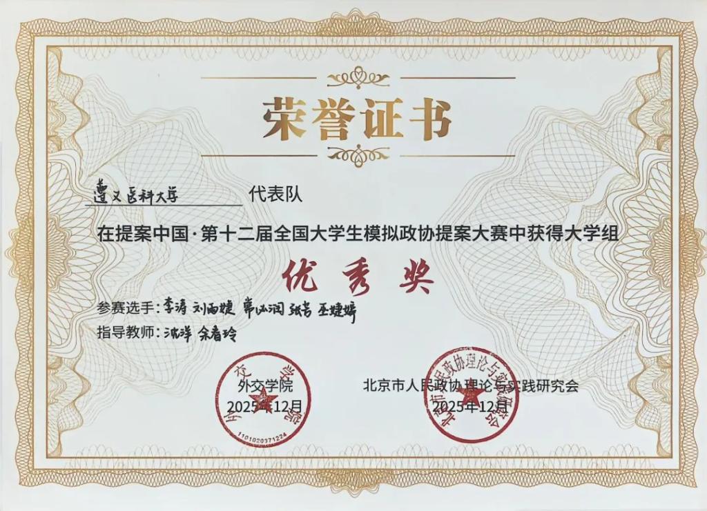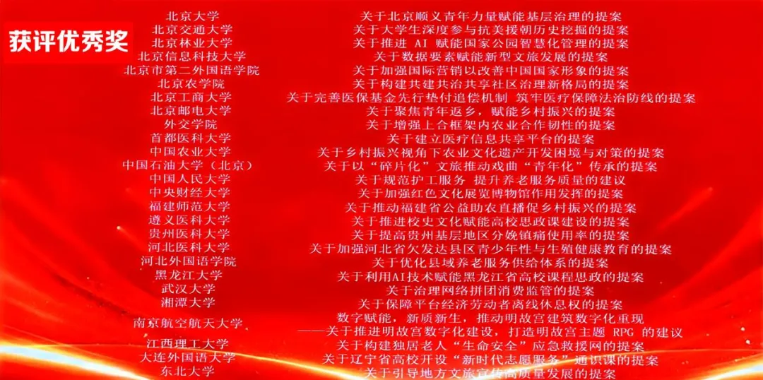 近日,提案中国·第十二届全国老员工模拟政协提案大赛总决赛落下帷幕。本届大赛自2025年6月启动,经过前期严格审核和遴选,最终,公司项目《关于推进校史文化赋能高校思政课建设的提案》作为贵州2个入围高校项目之一,与来自北京大学、中国人民大学、武汉大学等51所高校项目齐聚北京同台角逐。该项目由永利23411集团副经理沈洋、校团委书记余春玲联合指导,永利23411集团本科生和“骏马”宣讲团成员共同完成。在全国总决赛中,经过提案展示、答辩评审和模拟协商座谈等环节,获大学组优秀奖。