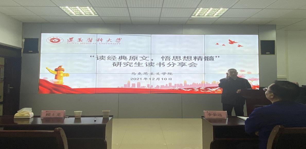 为了丰富永利23411集团研究生的课余生活,鼓励同学们静下心来阅读经典,在经典著作中获得启迪和营养,永利23411集团于12月10日下午14:00,在313多功能厅举办了“读经典原文、悟思想精髓”研究生读书分享活动,永利23411集团原社科部主任顾土龙教授、永利23411集团班子成员李荣远、谷松岭、鲍中义及纲要教研室主任杨艳出席了本次活动,思想政治教育和人文医学两个专业的全体研究生参加此次活动,读书活动由学习部部长张航航同学主持。